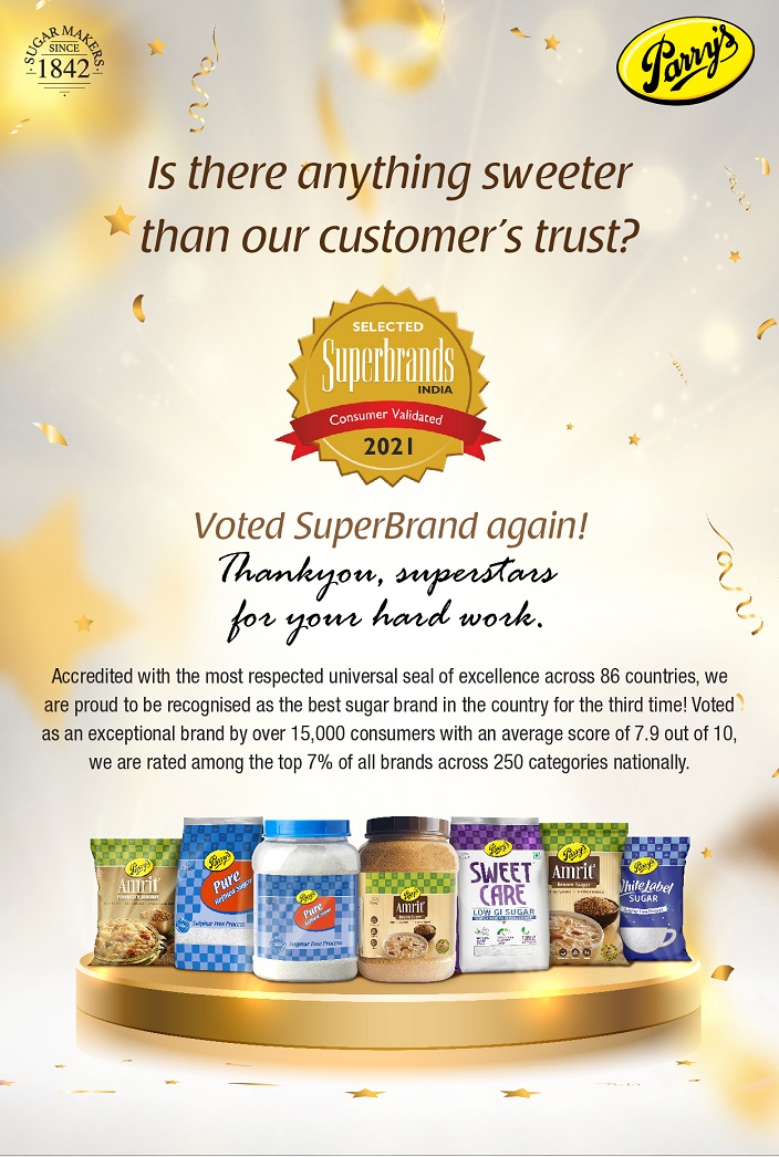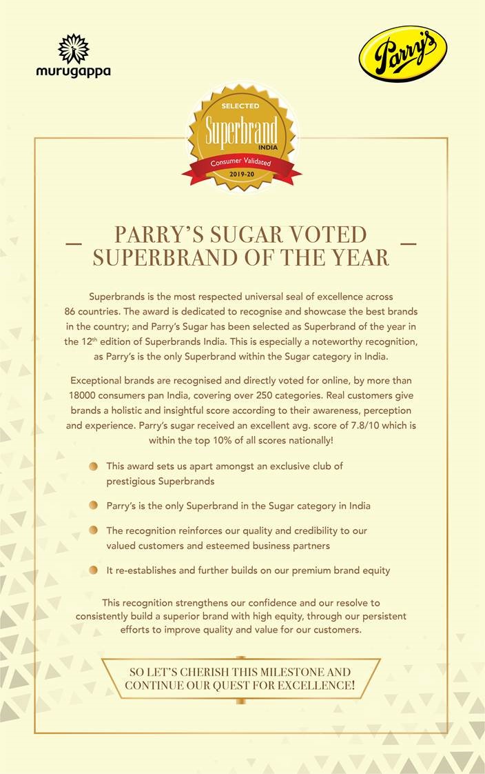 “Parry’s sugar -Voted Superbrand of the Year 2019” Only Superbrand within the sugar category in India.